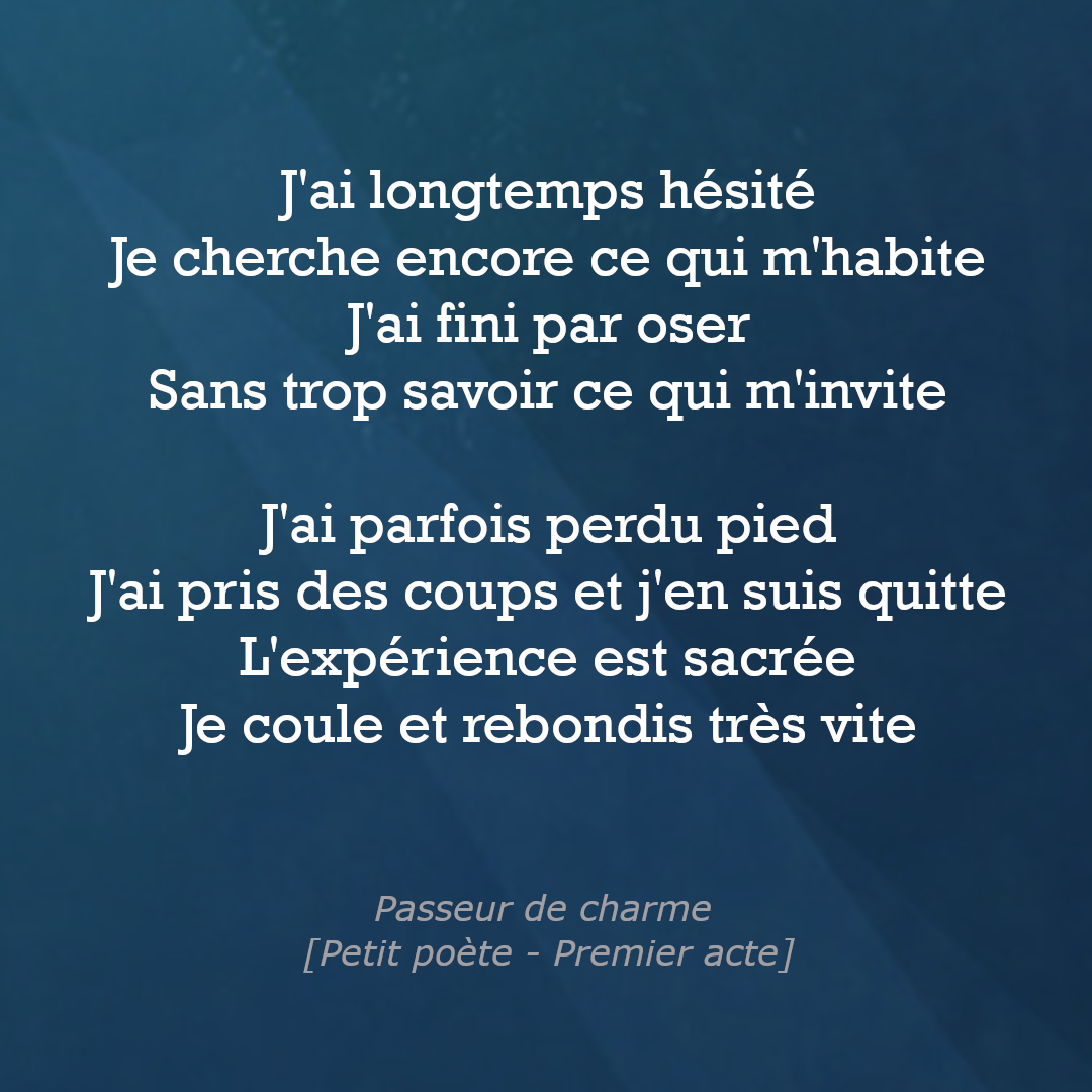 Choisissez l’extrait qui vous parle parmi les paroles des titres de son premier album et contactez-le.