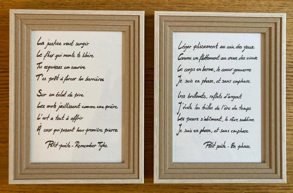 Vous souhaitez un extrait d’une chanson de Petit poète écrite à la main et encadrée? Choisissez l’extrait qui vous parle parmi les paroles de ses titres.
